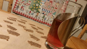 Pepparkakorna! Enkelt, man bakar lchf-pepparkakor! Detta kan man kombinera med en god glögg som man trollar ihop av ett torrt vin, inget restsocker alls, och glöggkrydda. Jag brukar sätta glöggkryddan i en tésil och värma vinet i en kastrull, med tésilen i. Vet ni vad det smakar? Glögg! Ett annat alternativ är att köpa ett gott Clippo-te, t.ex. "aronia and fruits" som är ett rött och gott te, och så sätter man vatten och ett par tepåsar i en kastrull med tésilen med kryddor.